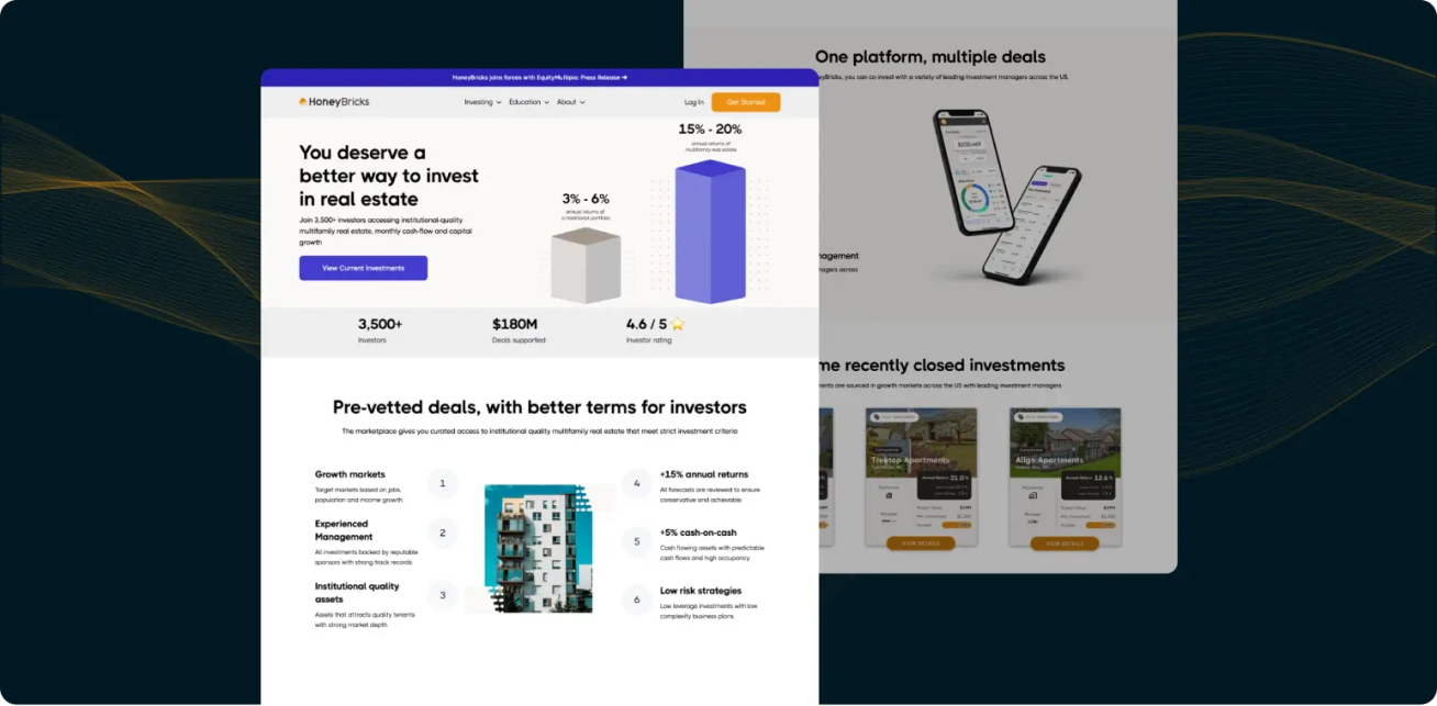 HoneyBricks is on a mission to unlock the potential of real estate. Their technology platform connects investors with high-quality multifamily investment opportunities in the United States.